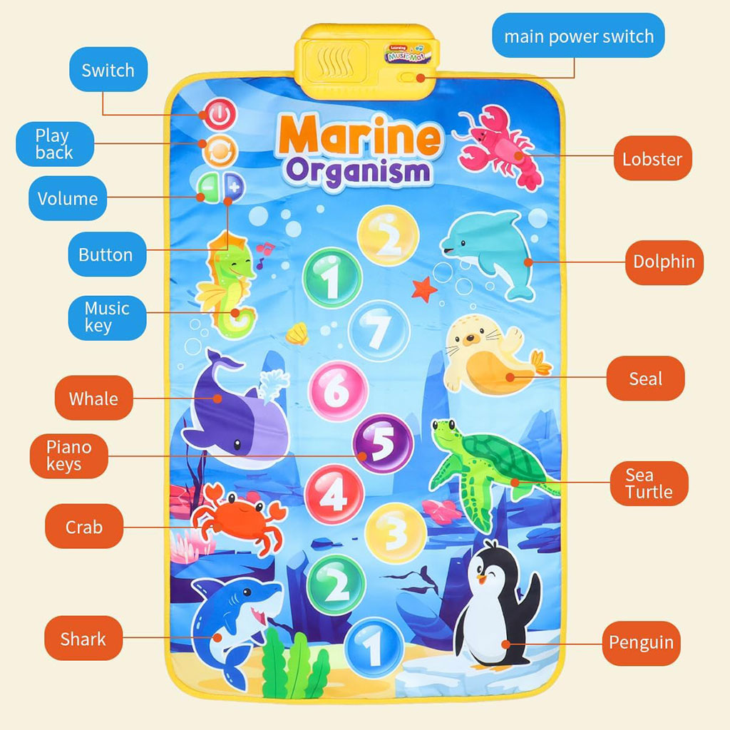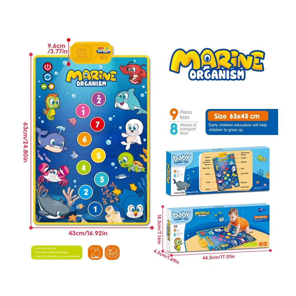 امنح طفلك تجربة ممتعة وتعليمية مع هذه السجادة الموسيقية التي تحتوي على 9 مفاتيح بيانو، 8 أصوات حيوانات، و6 مقاطع موسيقية. تُحفز التنسيق بين العين واليد وتطوّر المهارات الحركية الدقيقة.