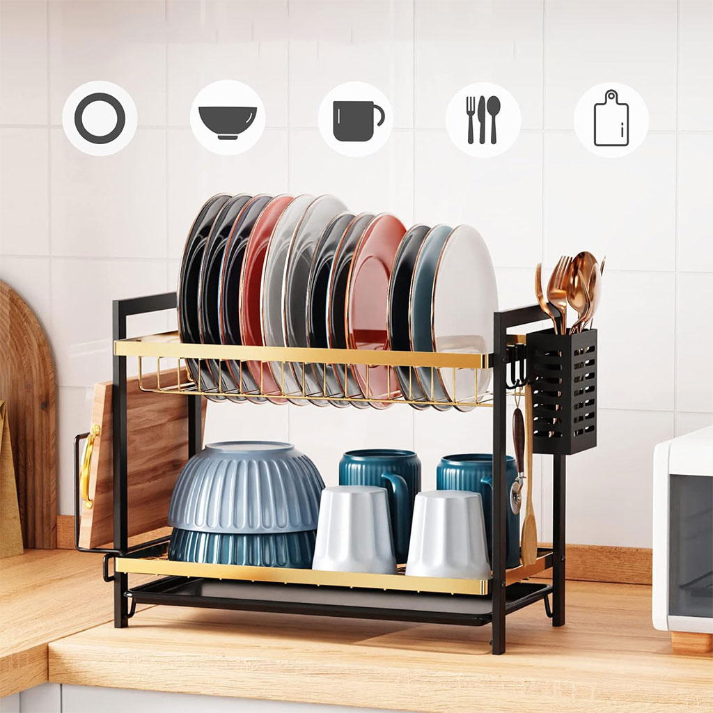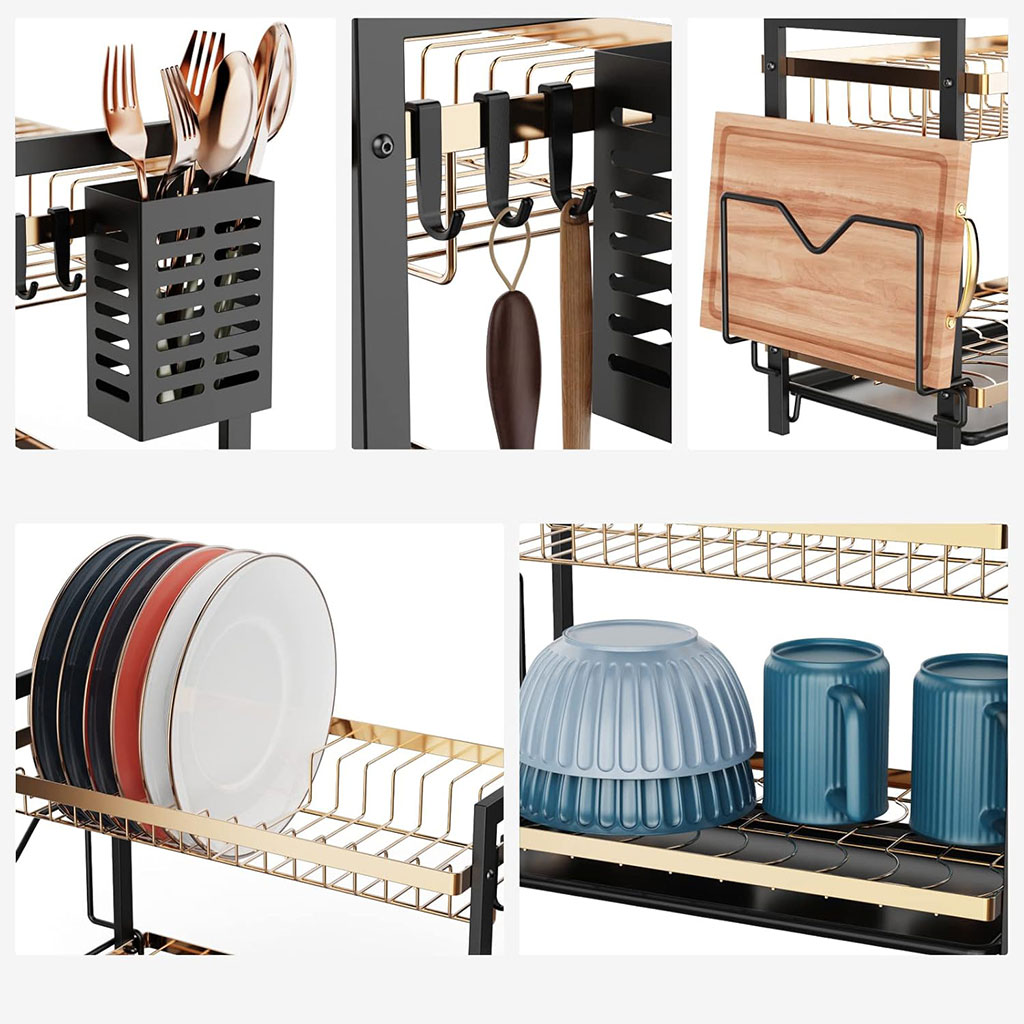 Égouttoir à Vaisselle 2 Niveaux Gold pour Comptoir de Cuisine – حامل أواني ذهبي