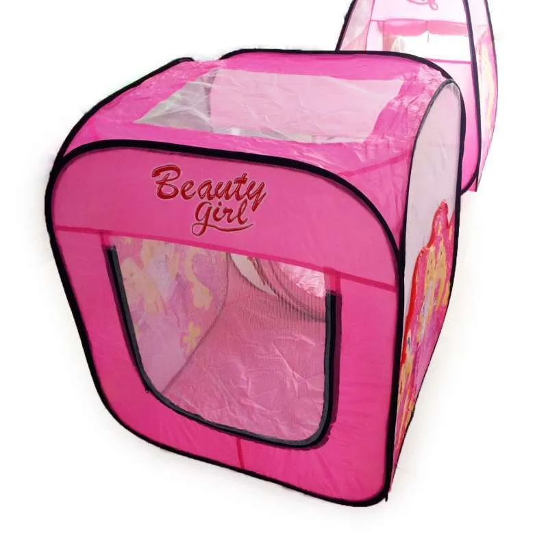 • مداخل مزدوجة ذكية: 1. مدخل بسحاب: يمكن فتحه وإغلاقه بسهولة من الداخل أو الخارج، مما يمنح الطفل خصوصية “بيته الصغير”. 2. مدخل الستارة: مزود بحبال للربط، يسهل الدخول والخروج السريع أثناء اللعب الجماعي.