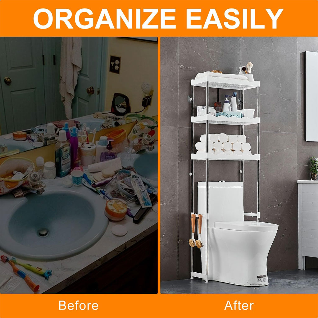 - Étagère de salle de bain au-dessus des toilettes à 3 niveaux