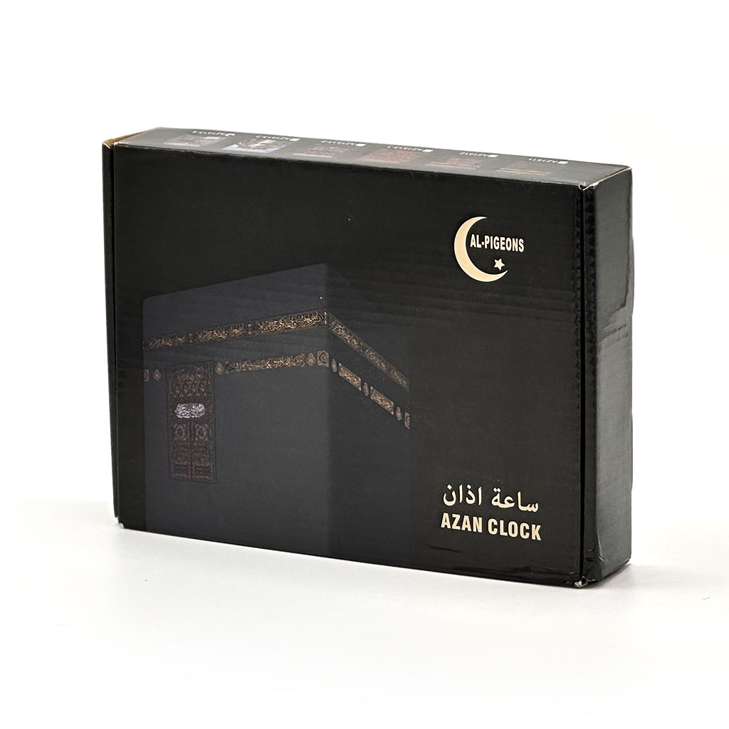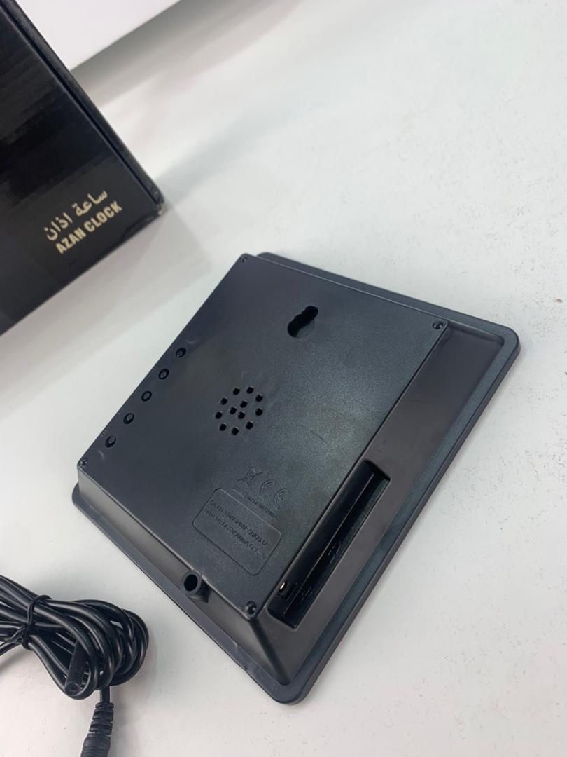- شاشة LED واضحة: تعرض الوقت، مواعيد الصلاة، التاريخ، ودرجة الحرارة.