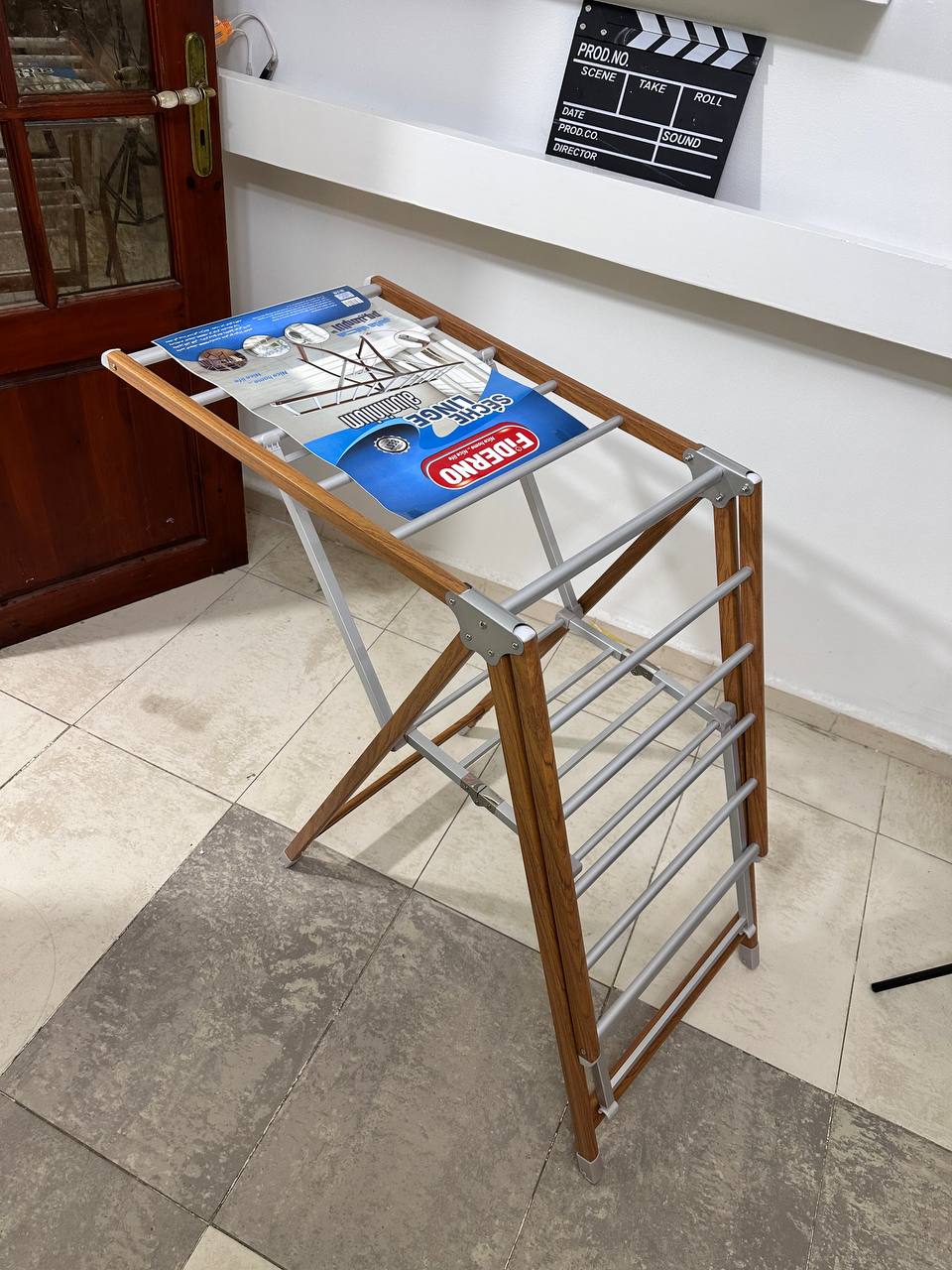 Sèche linge Aluminium à 4 Roues Design Bois – مجفف ملابس مع عجلات مخفية