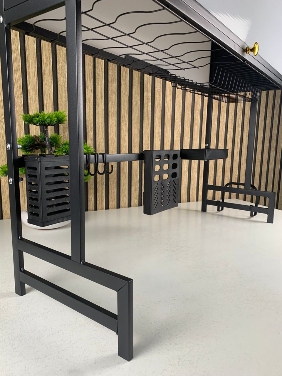 منشّف الأطباق المصمم للتركيب فوق الحوض يتميز بتصميم متعدد الوظائف يلبي مختلف احتياجات التخزين في المطبخ. مصنوع من الفولاذ المقاوم للصدأ عالي الجودة مع طلاء أسود ناعم، يتمتع بمتانة ممتازة ومقاومة عالية للصدأ، ما يضمن عمر استخدام طويل ويجعله قطعة أساسية في كل مطبخ.