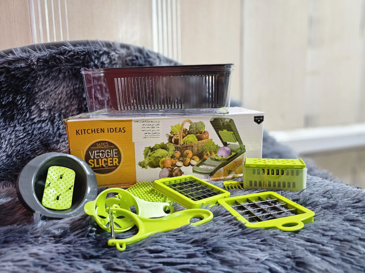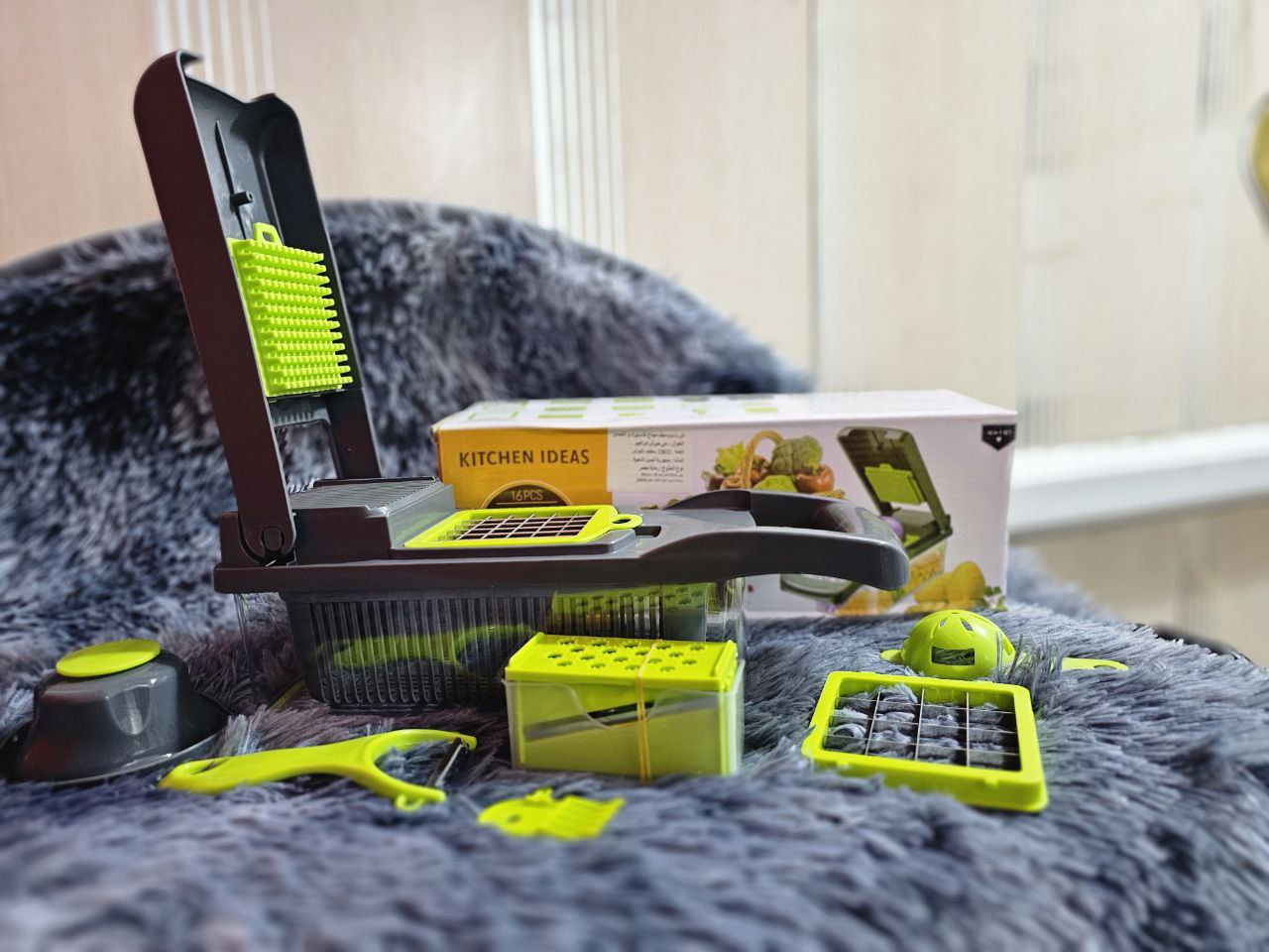 | مفرمة وخلاط خضروات متعدد الوظائف 14 في 1 فرّامة للبصل، البطاطس، الطماطم، الخيار، والجزر 🥕🔪 | 1 3400 د.ج |