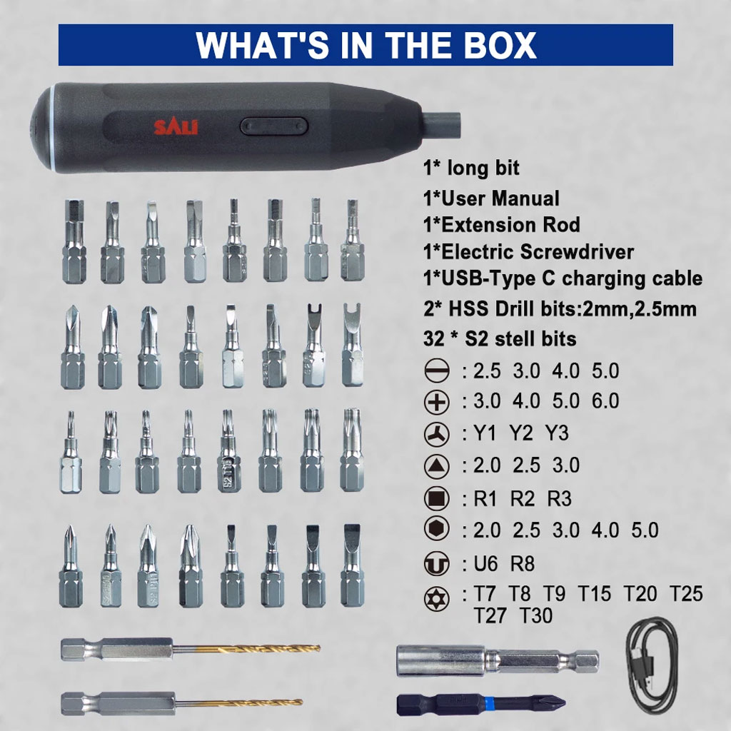 Tournevis Électrique Sans Fil SALI 39 en 1 Batterie Lithium 1200mAh – مفك براغي كهربائي