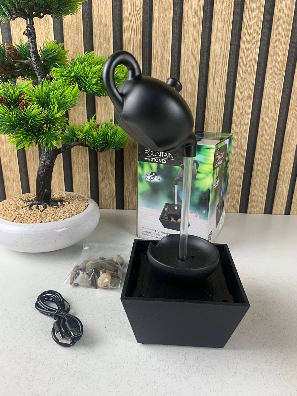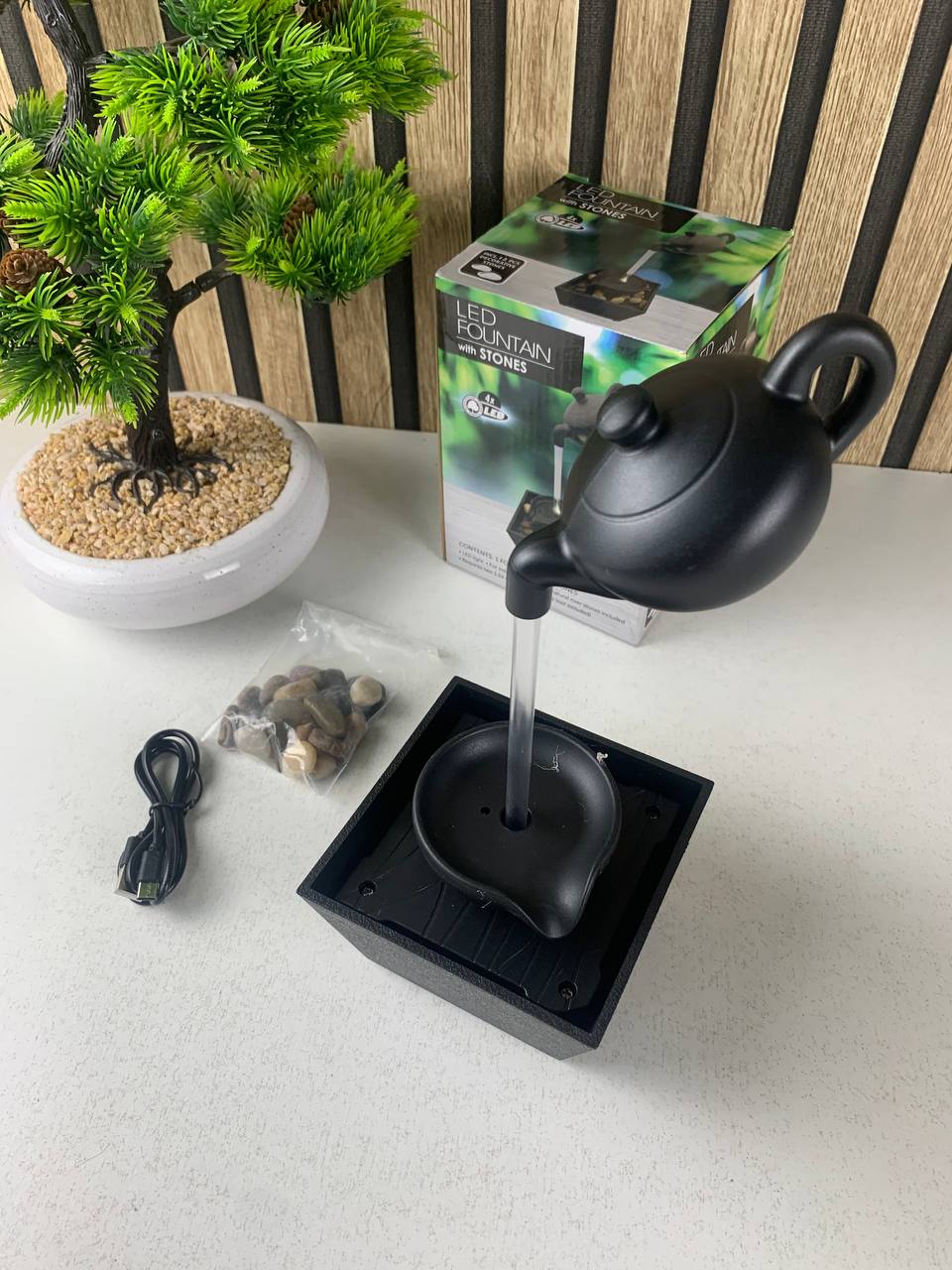 Fontaine théière flottante décoration de table avec lumières LED et pierres – نافورة مياه على شكل إبريق شاي عائم