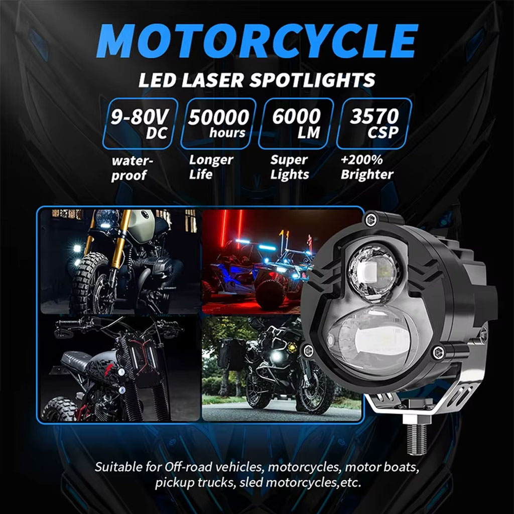 Paire de Phares Additionnels LED pour Moto – Projecteurs Anti-Brouillard 2Pcs – مصابيح دراجة نارية